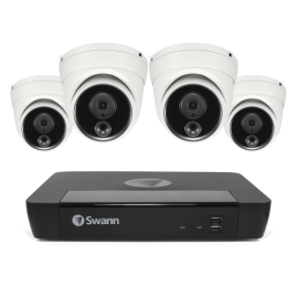 Swann 8 Channel Security System: 4K Super HD NVR-8580 with 2TB HDD & 4 x 4K Upscale NHD-875WLB Bullet Cameras